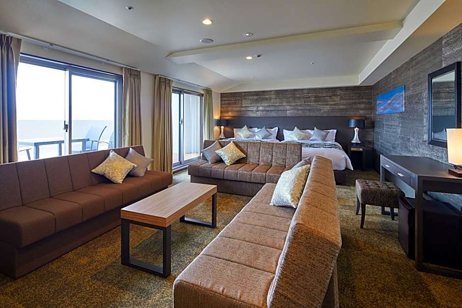 This suite has a electric kettle, bathrobe and flat-screen TV.